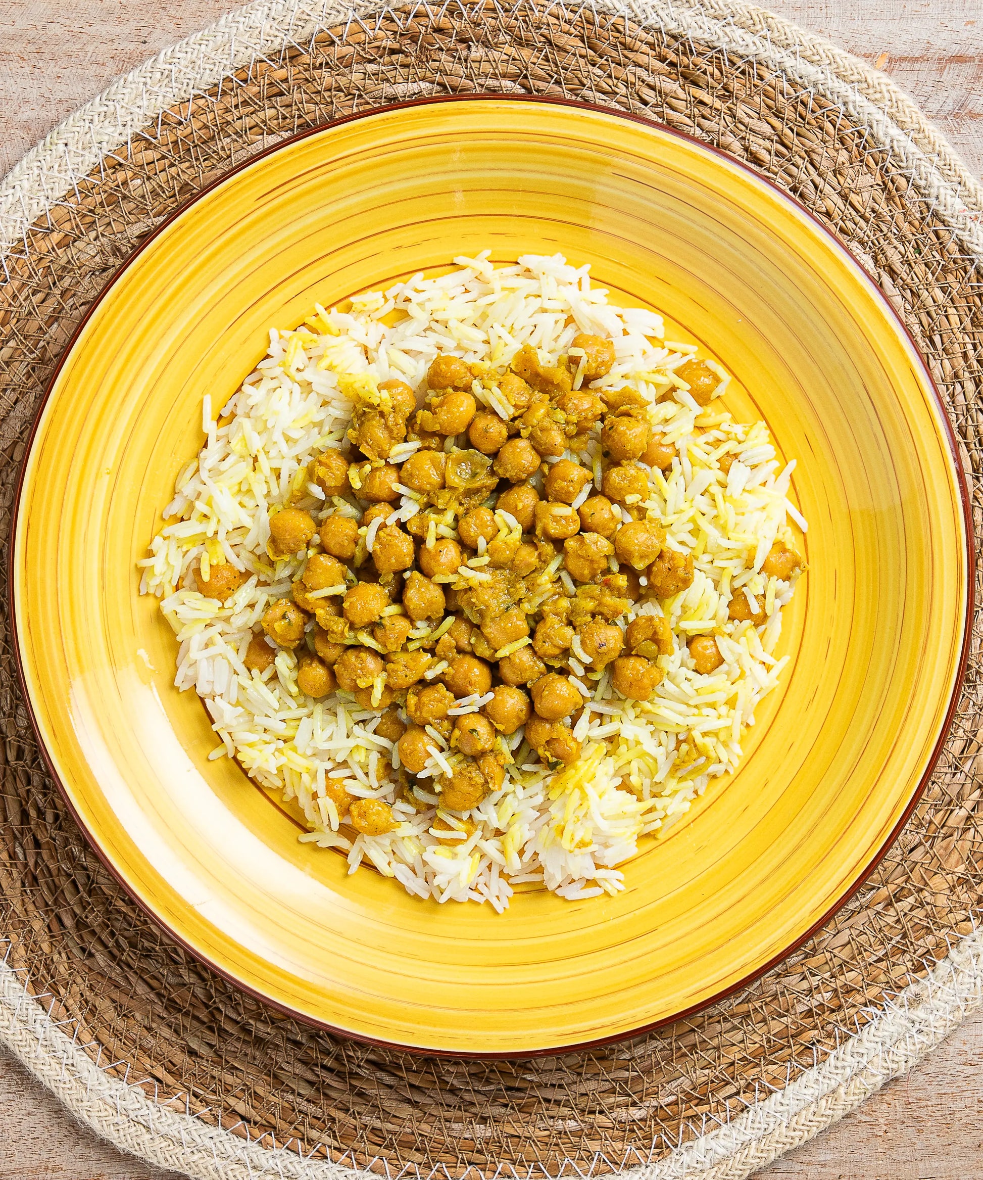 Riso Basmati, Ceci, curry, Olio di semi di girasole, Olio extra vergine di oliva, Prezzemolo, Farina di grano tenero, Sale