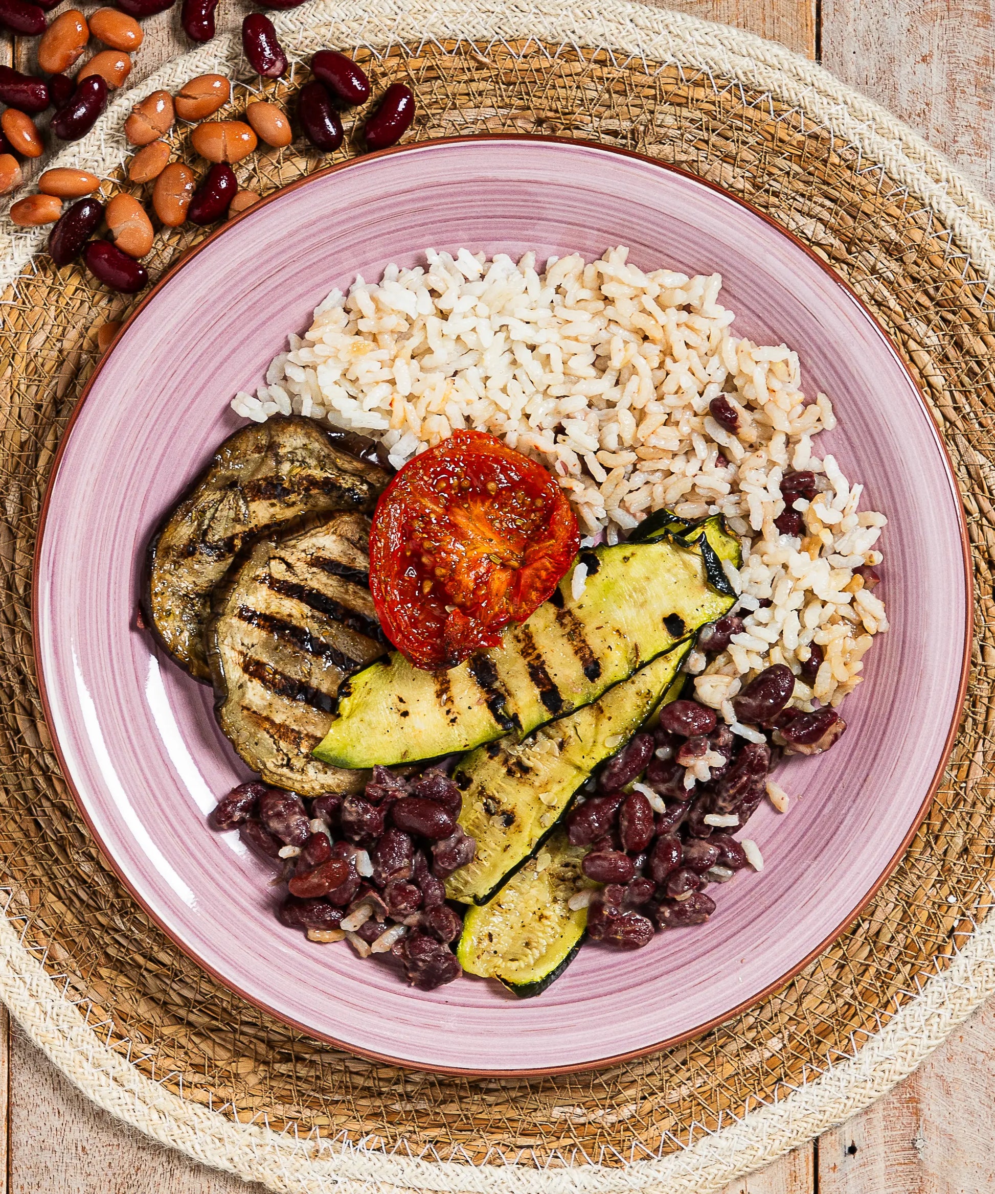 Un piatto mediterraneo colorato e bilanciato! Il Riso Carnaroli si unisce a verdure fresche e fagioli rossi per un mix genuino e saporito, pronto in 2 minuti! 🍆🍅🌾